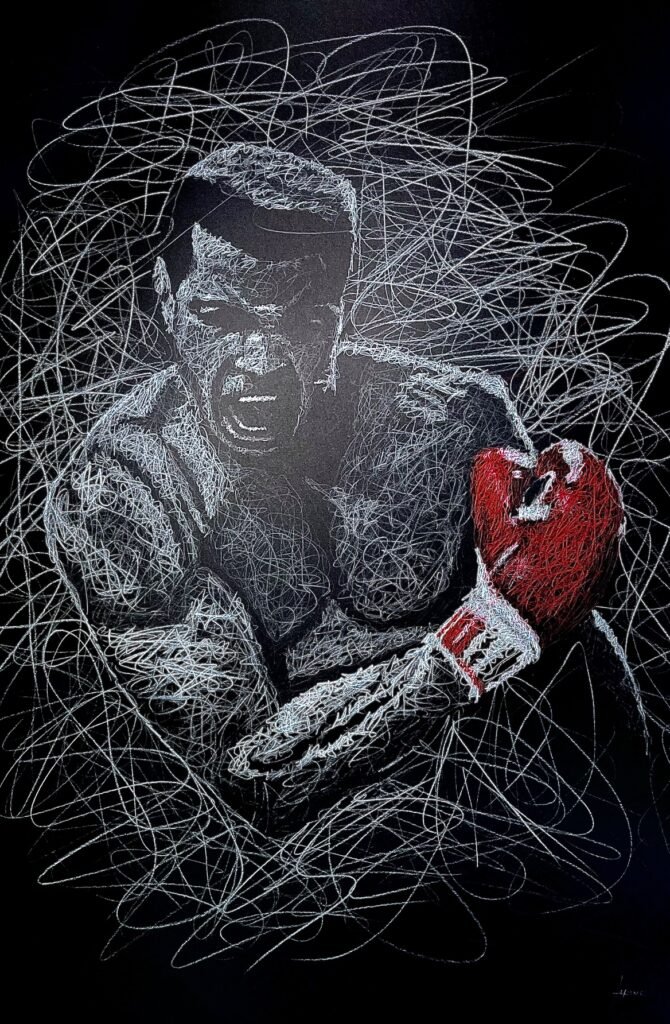 Il s’est spécialisé dans la technique du scribling, si particulière par les mouvements de traits instinctifs, vif, doux qui donne naissance à des oeuvres poétiques au style unique et envoutant.